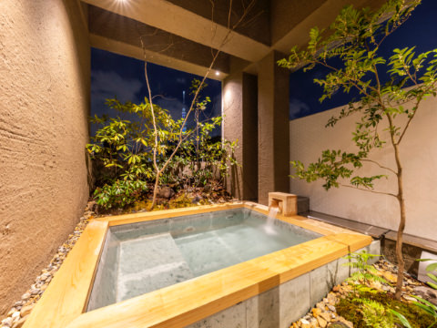 Blurring the distinction between outside and inside is typical of Japanese architecture. You can reserve time in the rooftop bath. Experience the seasons in the garden where you can feel at one with nature and the sky.