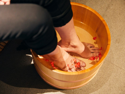 During the Edo period, it was customary, almost a ritual, for travelers to remove their footwear at the entrance of an inn and wash their feet in warm water. It was an excellent way to wash away the cares of the journey, and refresh one’s body and mind. We recommend this as a way to separate yourself from the cares of the world, and cross the threshold into a new experience.