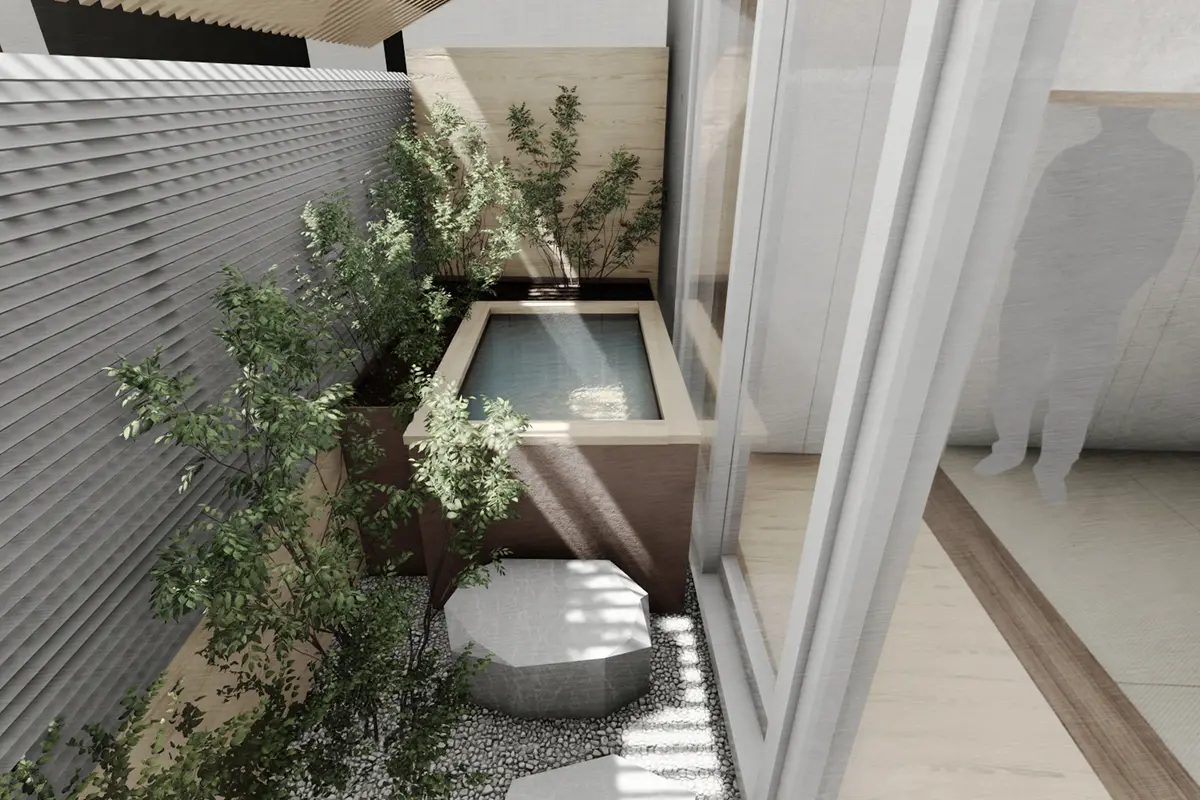Hospitality That Resonates Through Every Detail Cleanse your body in the steam inspired by Rinkan Cha no Yu, then gently unwind your mind with a quiet cup of tea. As you surrender yourself to the tea room—where the spirit of hospitality lives in every detail— a one-of-a-kind artistic experience naturally emerges through the space itself.